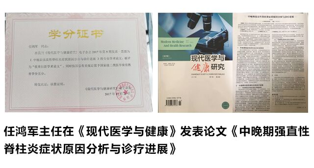 任鸿军主任一直不断通过学习来完善自己,并靠自身医学扎实基础在中晚期患者驼背、关节受限、疼痛反复等方面获得较高的造诣。