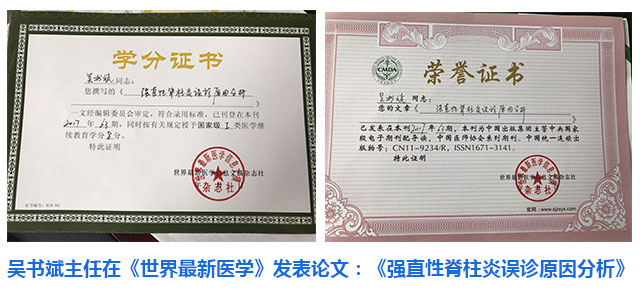 他不单单是一名医生、同时是一名参与药性研究、新技术研发的科研人员,他还是能参与各种国际学术研讨及学习的学者。曾在在知名医学刊物上发表论文2篇,参编专业风湿骨科书籍多本。