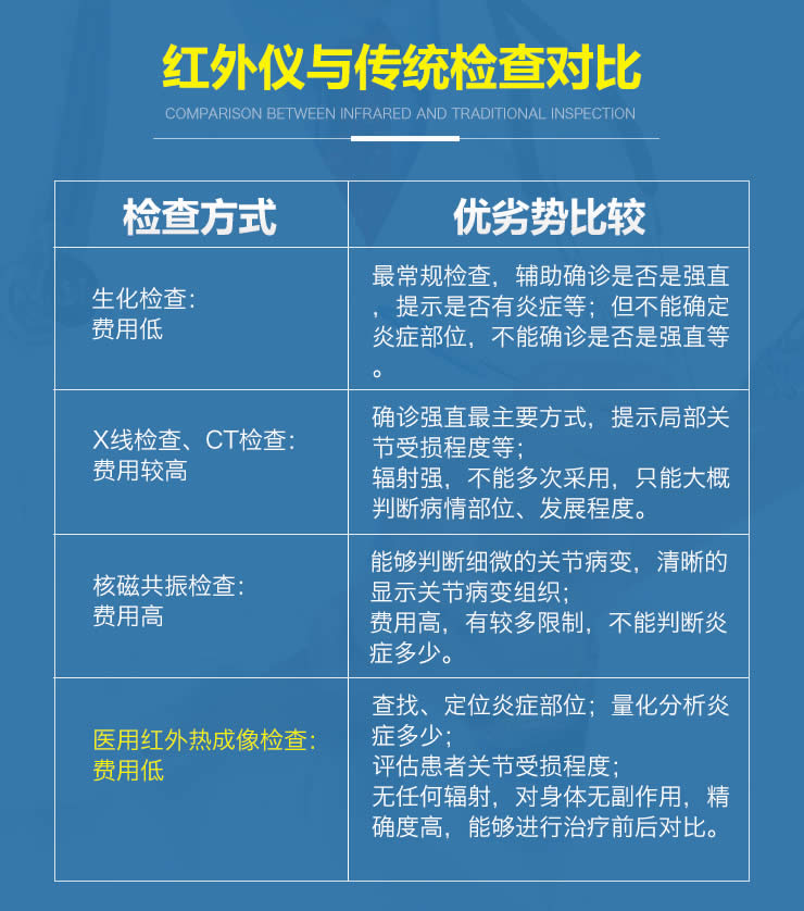 优势六:对于关节、脊柱炎性疾病发展进程及后期发展也具有提前评估作用,够帮助患者和医生以前治疗及预防。